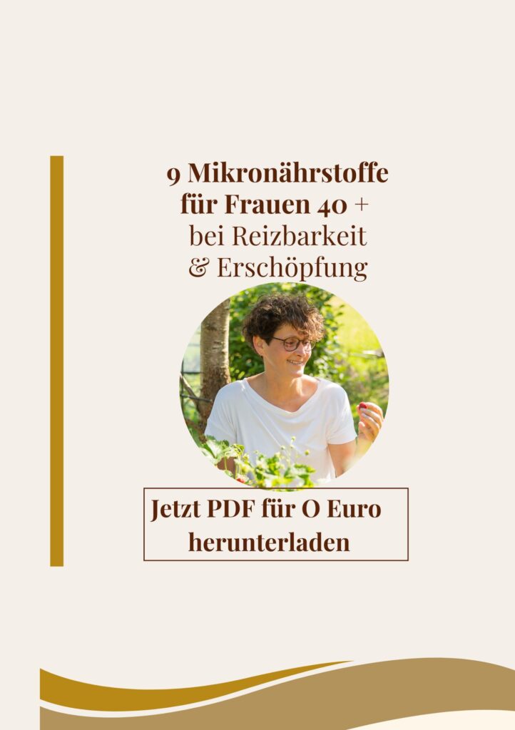 Starte mit dem 0 € Workbook 9 Mikronährstoffe für Frauen 40+ bei Reizbarkeit & Erschöpfung“